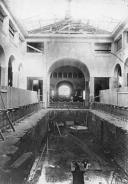 Das 90 Meter lange Längsschiff besteht aus einem hohen hellfarbenem Mittelschiff und zwei niedrigen Seitenschiffen, die durch Bogengänge geteilt sind und bis zum Boden reichende Fenster haben. Am Kopfende wurde eine Drehbühne eingebaut, die sich noch heute – jetzt allerdings nicht mehr mit manueller Kurbelkraft, sondern elektrisch – bei gutem Wetter nach draußen in den Kurgarten drehen lässt.