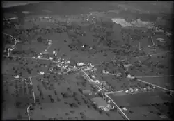 ![]() Drohnenaufnahme auf Höhe Bahnhof Siebnen-Wangen mit Blick Richtung Dorfzentrum.
