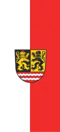 Die Flagge ist Weiß-Rot gespalten mit aufgelegtem Kreiswappen.[3]