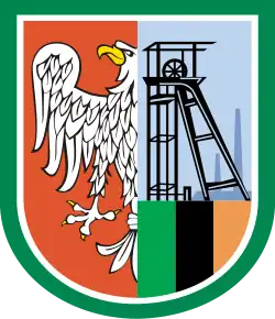 Das 1998 eingeführte Wappen beruht auf dem Wappen von Nowy Bytom und zeigt vorne in Blau einen halben, goldenen Adler am Spalt (den Adler der oberschlesischen Piasten) und hinten ein Bildnis der Heiligen Barbara.