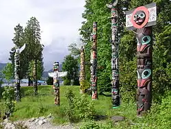 Ein Wappenpfahl, auch Gedenkpfahl, populär zumeist als Totempfahl bezeichnet, ist eine monumentale Skulptur mit übereinander angeordneten Figuren, die aus einem großen Baumstamm geschnitzt und anschließend bemalt wird. Wappenpfähle waren vor allem bei den Indianern der amerikanischen Nordwestküstenkultur verbreitet. Die Errichtung eines Wappenpfahles war mit der Ausrichtung eines Potlatches verbunden, bei dem die Stellung der Familie in der sozialen Hierarchie ihres jeweiligen Stammes bestätigt wurde. Anders als von den ersten Missionaren in British Columbia vermutet, haben Wappenpfähle keine religiöse Bedeutung im Sinne eines spirituellen Totemismus. Sie waren weder heilig noch wurden sie angebetet, sondern hatten eine soziale und politische Funktion.[1] Sie sind nicht mit dem Marterpfahl zu verwechseln, der von indigenen Völkern anderer Regionen Nordamerikas zur Folterung von Gefangenen verwendet wurde. Pfahlskulpturen mit einer ähnlichen Bedeutung finden sich auch in Ozeanien und Indonesien (etwa bei den Asmat in Westneuguinea oder den Dayak auf Borneo).[2]