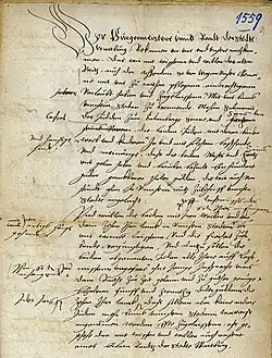 Ab 1556 wirkte Simon Del Banco (1500–1566) als Geldverleiher für Bauern und Getreidehändler in Kassel, der Residenz von Philipp I. Nach einer Hausdurchsuchung änderte Del Banco aus Sorge vor weiteren Repressalien und im Sinne der Integration seinen Namen in Simon von Cassel.[2] Via Herford und Beckum siedelte Simon von Cassel 1557 mit Frau, Kindern und Dienerschaft schließlich in die westfälische Hansestadt Warburg im Hochstift Paderborn.[3] In Warburg wurde ihm am 3. Januar 1559 gegen eine einmalige Zahlung von 100 Talern sowie weiteren jährlich zu entrichtenden Gebühren vom Rat der Stadt Warburg eine zeitlich begrenzte Wohn- und Handelserlaubnis ausgestellt. Nach einigen Jahren adaptierte Simon von Cassel schließlich Warburg als neuen Familiennamen und gilt seither als Ur-Ahn der Familie Warburg.[4] Die zunächst auf zehn Jahre begrenzte Aufenthaltsgenehmigung wurde vom Hochstift Paderborn immer wieder verlängert, sodass die Familie fast über 100 Jahre im Westfälischen blieb. Offenbar gelangte sie in dieser Zeit zu Wohlstand und Ansehen.[5]