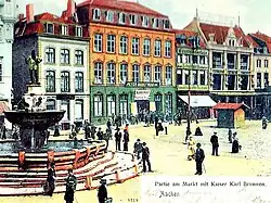 Weil Godefroid von der Geschäftsidee von Leonhard Tietz überzeugt war, kaufte er Anfang des 20. Jahrhunderts in Nachbarschaft zu seinem Haus Großkölnstraße 1 weitere zusammenhängende bebaute Grundstücke im Bereich des Marktes, darunter die Häuser Markt 45 und Markt 47. Sein Plan dabei war, sie kurzfristig in ihrer Gesamtheit niederreißen und an ihrer Stelle ein neues zentrales Tietz-Warenhaus bauen zu lassen. Einzig das Haus Brüssel aus dem 18. Jahrhundert mit drei angrenzenden Bauten in der Pontstraße blieb von dem Kaufansinnen Godefroids verschont und existiert noch heute. Besonders der Abriss der beiden Häuser Markt 45 und 47 in einer Zeit, in der es noch keinen Denkmalschutz gab, brachte einen Verlust an historisch bedeutenden Gebäuden für die Stadt. Bei dem Haus Markt 45 handelte es sich um das sogenannte „Haus zum Schwarzen Adler“, das nach dem Stadtbrand von Aachen im Barockstil, erbaut worden war. Es war das Zunfthaus der „Gesellschaft zum Schwarzen Adler“ und während der Aachener Mäkelei Sitz der „Neuen Partei“. Als angesehenstes Gasthaus am Markt diente es ferner im Jahr 1818 als Tagungsraum beim Aachener Kongress. Darüber hinaus beherbergte es eine bedeutende Gemäldegalerie der Familie Bettendorf, die über mehrere Generationen Besitzer des Hauses war. Das Nachbarhaus Nummer 47 war der sogenannte „Goldene Helm“ und das Stammhaus der Familie Jakob Couven, des Großvaters von Johann Joseph Couven, die es seit dem 17. Jahrhundert bewohnte.[1]