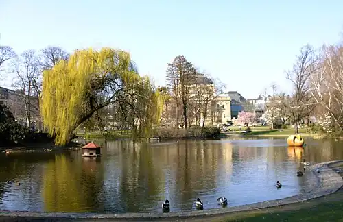 Die Trauerweide über dem Weiher und die rosablühende Zierkirsche neben dem Staatstheater wurden abgeholzt.
