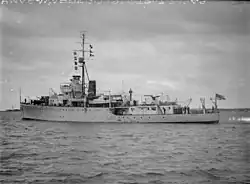 Die Warrego wurde am 10. Mai 1939 in den Cockatoo Island Dockyards, Sydney auf Kiel gelegt und fast ein Jahr nach Kriegsbeginn am 15. August 1940 von der australischen Marine in Dienst gestellt. Die ersten anderthalb Jahre war sie das Flaggschiff der 20. Minenräumflottille, welche die Gewässern um die australische Südküste von feindlichen Seeminen freihalten sollte. Mehrere deutsche Hilfskreuzer, wie die Pinguin, hatten dort im Oktober und November 1940 Minenfelder gelegt. Diese Aufgabe dauerte bis zum 3. Dezember 1941, dann wurde die Warrego aufgrund des sich abzeichnenden Ausbruchs des Pazifikkriegs nach Norden verlegt, erst nach Port Moresby, dann nach Darwin, wo sie am 9. Januar 1942 eintraf.
