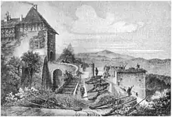 - ↑ Hugo von Ritgen: Die Schanze / Der Pulverturm. In: Der Führer auf der Wartburg. Ein Wegweiser für Fremde und ein Beitrag zur Kunde der Vorzeit. J.J. Weber Verlagsbuchhandlung, Leipzig 1860.