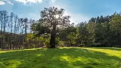Auf dem Dorfplatz wurden nach dem Deutsch-Französischen Krieg (1870/71) vier Eichen gepflanzt, in Angedenken an die vier Gefallenen des Dorfes. Drei der Eichen existieren noch und gaben der nahen Gaststätte ihren Namen.[3]