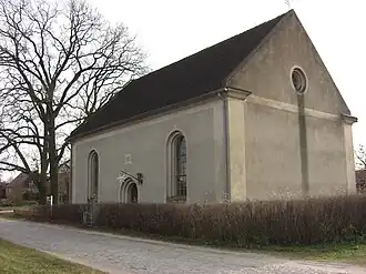 Die Kirche stammt aus dem Jahre 1825 und ist ein Putzbau ohne Turm. Die letzte Kirchenrenovierung fand 1986 bis 1988 statt. Aus dieser Zeit stammen die Bleiglasfenster der Kirche. Kunsthandwerker Peter Hartlich aus Mittenwalde fertigte sie an. Die Orgel aus dem Jahr 1842 wurde 1992 saniert. Die Winterkirche unter der Empore wurde 1994/95 errichtet. 2001 wurden durch Mitarbeit von ABM-Kräften der Glockenstuhl, die Leichenhalle und die eingefallene Friedhofsmauer restauriert.[4]