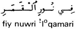 - Endet das Wort vor dem Verbindungshamza mit einem Langvokal, so ist dieser kurz zu sprechen,[4] damit durch das Verschmelzen der Wörter in der Aussprache keine überlange Silbe entsteht. Beispiel: فِي ٱلْبَيْتِ / fi͜ 'l-bai·ti / ‚im/ins Haus‘ (nicht fī)