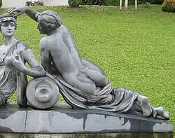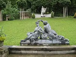 - ↑ Die Kopie K2 wurde 1944 durch Bomben zerstört, nur der Torso der Wiesennymphe und der Kopf der Wassernymphe blieben erhalten.
