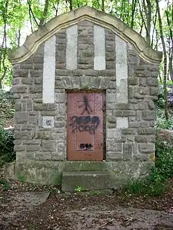 Der Typenbau in Formen des Jugendstils aus Sandstein-Bossenquadern ist mit der Jahreszahl 1906 bezeichnet.