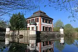 Der Seligenstädter Abt Franziskus II. Blöchinger ließ das heutige Wasserschloss in seiner Amtszeit (1695–1715), wohl um 1700 oder 1705 errichten. Es diente als Gartenhaus für die frühneuzeitlich-höfische Festkultur im Garten der Seligenstädter Äbte. Bereits ein Jahrhundert später kam die Wasserburg durch die Säkularisation in Landesbesitz. Seit 1972 befindet sie sich in Privatbesitz und wurde denkmalgerecht restauriert. Die Wasserburg ist Ausgangspunkt des Kulturradwegs „Kurmainzer Herz“ des Regionalpark Rhein-Main.