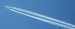 In der Luft unsichtbar vorhandener Wasserdampf kondensiert unter besonderen Bedingungen (durch Kristallisationskeime) und wird sichtbar, etwa wenn ein Flugzeug in Bodennähe mit hoher Geschwindigkeit fliegt, dieser im Bild deutlich sichtbare Effekt wird oft fälschlich als „die Schallmauer“ bezeichnet, dieser Effekt ist jedoch kein Über- oder Unterschalleffekt. Durch die hohe Anströmgeschwindigkeit der Luft kann aus strömungsmechanischen Gründen, beispielsweise hohe Druckschwankungen, die Temperatur der anströmenden Luft stark und somit unter den Taupunkt abfallen, was zu einer Auskondensation führt. Der Wasserdampf im heißen Abgas wird hingegen von der sich erwärmenden Luft aufgenommen.