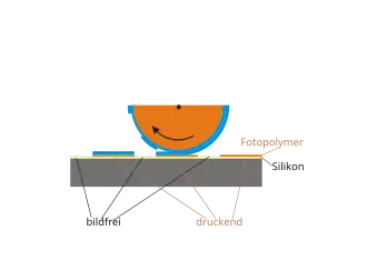 Die Bebilderung der Platten kann fotomechanisch mit anschließender Entwicklung durch Verfestigen (Positivkopie) der Silikonschicht erfolgen, dann ist sie Teil der modernen CtP-Arbeitsabläufe (Computer to Press, Direktbelichtung aus Daten). Andererseits kann die Bebilderung durch Ablösen der Silikonschicht (Negativkopie) erfolgen.[1]