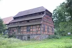 Nach Osten schließt sich giebelseitig das ehemalige Wohnhaus an, das 1750 als Papiermühle auf den Fundamenten eines älteren Gebäudes errichtet wurde. Es hat ein massives Untergeschoss, das Obergeschoss und die Rückseite bestehen aus Ziegelfachwerk. Das Krüppelwalmdach besitzt einen Dachhecht auf jeder Seite. Den östlichen Abschluss bildet ein eingeschossiger Backsteinbau mit Lisenengliederung und Satteldach mit Teerpappe.