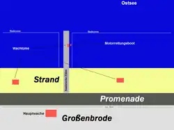 - Rettungsschwimmer bilden den Hauptteil des Personals. Aufgabe der eingesetzten Rettungsschwimmer ist es, die Badegäste durch Aufklärung und Prävention vor Gefahren zu bewahren. Sie leisten Hilfe bei Notfällen im und am Wasser und betreuen hilfsbedürftige Personen und Verletzte. Sie sind gegenüber Dritten (Badegästen) nicht weisungsbefugt und dem Wachleiter unterstellt.