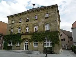 Neben diesen Anwesen gab es noch ein Schloss, eine Fronveste mit Gerichtsdienerwohnung, ein Dekanatshaus, ein Kaplaneihaus, eine Stadtpfarrkirche, eine Kapelle, eine Synagoge, ein Rathaus, ein Schulhaus, ein Hirtenhaus, zwei Torhäuser, ein Brechhaus und ein Schießhaus.[12][13][14] Von 1797 bis 1808 unterstand der Ort dem Justiz- und Kammeramt Wassertrüdingen.[15]