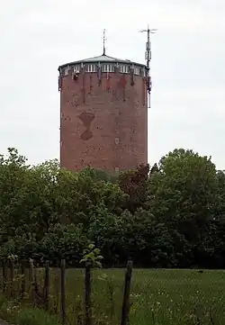 Der 1935 errichtete Backsteinturm[1] hat ein Fassungsvermögen von 2.000 m³.[2] Unterhalb des Turmes befinden sich weitere vier Trinkwasserbehälter.[3] Die Behälter mit einem Fassungsvermögen von insgesamt 10.000 Kubikmetern wurden 1927 in Betrieb genommen, bzw. 1956 fertiggestellt.[4]