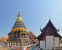 • der „Wihan Luang“ ist neben dem Chedi das größte Gebäude des Tempelbezirks. Er ist zum östlich liegenden Hauptportal ausgerichtet und stammt wahrscheinlich aus dem 13. Jahrhundert. Wie in Lanna-Tempeln üblich, wurde er ohne Wände als offene Halle errichtet. Heute trägt er ein tief herunter gezogenes, dreistufiges Dach auf Betonsäulen, wo früher Holzpfeiler standen. Im hinteren Teil befindet sich in einem vergoldeten Ku (ähnlich einem Sakramentshaus) die Buddha-Statue des Phra Chao Lan Thong, der 1563 gegossen wurde.