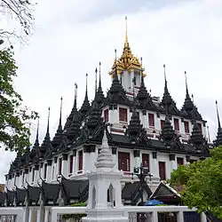 Der Tempel ist bekannt durch den Loha Prasat (Thai: โลหะปราสาท – Eisen-Palast). Diese für Thailand in einem ungewöhnliche Stil erbaute Chedi ist eine Nachbildung eines ähnlichen Gebäudes, das für König Dutthagamani von Anuradhapura in Sri Lanka um 150 v. Chr. erbaut wurde. Dieses Gebäude wurde „Lovamahapaya“ oder auch „Lohaprasadaya“ genannt und war zu seiner Zeit einzigartig: Es war ein neunstöckiges Gebäude mit einer Seitenlänge von 120 m, insgesamt 1600 Steinsäulen bildeten das Fundament, das heute noch erhalten ist. Es soll mit Ziegeln aus Bronze gedeckt gewesen sein, daher der Name Bronze-Palast (Brazen Palace).[3]