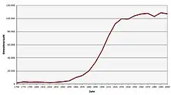 In den ersten knapp 200 Jahren des Bestehens der Stadt stagnierte das Wachstum der Bevölkerung. Seit der zweiten Hälfte des 19. Jahrhunderts kam es im Zuge der Industrialisierung zu einem sprunghaften Anstieg der Einwohnerzahl. Diese Entwicklung brach mit der Weltwirtschaftskrise in den frühen 1930er Jahren ab. Seither erzielte die Stadt nur ein minimales Bevölkerungswachstum und verzeichnete in den 1970er Jahren vorübergehend einen Rückgang der Einwohnerzahl.