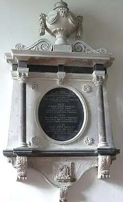 Die Grabplatte von Joseph Davie Bassett (1764–1846), dem Erbauer von Watermouth Castle, seiner Gattin und zwei minderjährigen Kindern ist am östlichen Ende des Südflügels der Kirche in Berrymarbor in die Wand eingelassen. Im Rondell in der Mitte steht:
