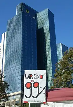 - ↑ FAZ am 15. Oktober 2011: Wir sind jetzt ihre Krise. Auch in Deutschland verfängt der New Yorker Slogan „Wir sind die 99 Prozent“. Gekommen sind mehr als 5000 Protestierende nach Frankfurt. Abgerufen am 16. Oktober 2011.