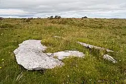 Zwei große Platten unbekannter Funktion, westlich der eingestürzten Kammer, sind teilweise im Boden verborgen. Die nördliche misst etwa 1,85 m und die südlichen 2,4 m.