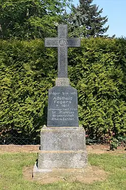 Das Kreuz ist aus schwarzem poliertem Marmor hergestellt und hat einen mehrfach gestuften Sockel. Nach einer Inschrift wurde das Kreuz in Erinnerung an Adelheid Fegers errichtet, die auf einer Pilgerreise nach Trier 1811 in Arnoldsweiler verstorben ist.