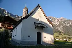 Der nach Norden orientierte Rechteckbau hat einen Dreiachtelschluss und ein Satteldach mit einem Dachreiter. Der Betraum hat ein Tonnengewölbe, der Chor hat eine Flachdecke.