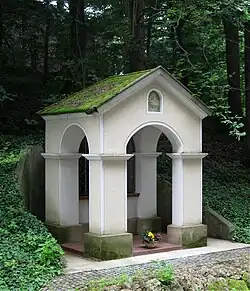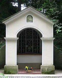 Die Kapelle stammt aus dem zweiten Viertel des 19. Jahrhunderts. Sie hat einen etwa quadratischen Grundriss und trägt ein Satteldach. Einer massiven Rückwand mit einer durch ein schmiedeeisernes Gitter verschlossenen Nische ist ein offener Portikus mit Rundbögen vorgelagert, der auf zwei massiven Pfeilern ruht. Rückwand und Pfeiler ruhen auf Steinsockeln und sind unterhalb der Bogenansätze durch ein Gesims horizontal gegliedert. Über dem Rundbogen auf der Giebelseite sitzt ein rundbogiges Blendfenster mit der Inschrift „St. Georg“. In der Wandnische befindet sich ein Bild des heiligen Georgs.