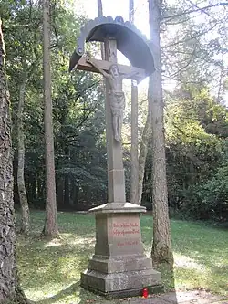Das Flurkreuz besteht aus Sandstein und stammt aus der zweiten Hälfte des 19. Jahrhunderts.