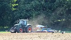 Weißstörche beim „Ackern“ in Mecklenburg