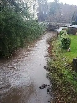 Nach dem Zufließen des zuvor den Gambacher Weiher durchflossen habenden Gambachs von rechts passiert die Weibe die Kernstadt Freudenbergs.