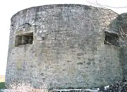 Südöstlicher Turm des nicht erhaltenen Hauptgebäudes. Auf dem Sandsteinmauerwerk saßen früher noch zwei Fachwerk-Etagen und ein Dach.