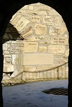 Blick ins Innere des Dicken Turms, wo prominente Burgbesucher des 19. Jahrhunderts im sogenannten Steinernen Album verewigt wurden