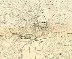 Blick vor 1900 von Weidenhausen auf Oberstadt mit Weidenhäuser Brücke