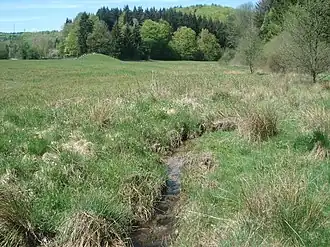(Im Hintergrund die Sendeanlagen des Geiersbergs) Der Weihersbach kurz vor dem Zusammenfluss | ||