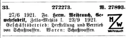 HWZ (Hermann Weihrauch Zella-Mehlis) eingetragen als Warenzeichen 1921