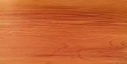 Das relativ leichte Holz hat einen rötlichbraunen, im Gegensatz zum Lebendholz gegen Fäulniserreger widerstandsfähigen Farbkern und einen schmalen, cremig-weißen bis gelblichen Splint. Die Jahresringe sind gut erkennbar, haben nur eine schmale Spätholzzone und verlaufen oft wellig. Tracheiden machen etwa 80 % des Holzgewebes aus. Sie haben Längen von 900 bis 3000 Mikrometer und im Spätholz eine Wandstärke von 4,8 bis 9,9 Mikrometer. Die Holzstrahlen sind 9 bis 16 Mikrometer breit und 40 bis 275 Mikrometer hoch. Harzkanäle fehlen. Das Holz ist leicht und sehr dauerhaft, hat eine gleichmäßige Textur und lässt sich leicht spalten, nageln und schrauben.[7] Es riecht intensiv nach Weihrauch.[26]