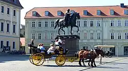 Eine wichtige Rolle spielte die Stadt als Ort der Weimarer Klassik während der Regentschaft der Herzogin Anna Amalia und unter ihrem Sohn Herzog Carl August Ende des 18./Anfang des 19. Jahrhunderts durch die Anwesenheit Wielands, Goethes, Herders, Schillers und Falks sowie anderer wichtiger Persönlichkeiten der Epoche.[13] So kam es zur Bildung der Legende vom Weimarer Musenhof. Wahr ist fraglos, dass Anna Amalia gern gelehrte Persönlichkeiten um sich hatte. Das Wittumspalais und das Schloss Tiefurt und das damit verbundene Tiefurter Journal legen hierfür Zeugnis ab. Carl August seinerseits war zum einen bereit, an seinem Hof Künstler zu beschäftigen, zum anderen ließ er ihnen aber auch die Freiheiten, das zu verwirklichen, woran sie selbst glaubten. Herzog Carl August galt als tolerant und aufgeklärt; er war 1816 auch der erste Monarch Deutschlands, der seinem Staat eine Verfassung gab. Dieses hieß sogar „Grundgesetz“![14] Das Wartburgfest deutscher Studenten von 1817 fand auf seinem Territorium statt.[15]