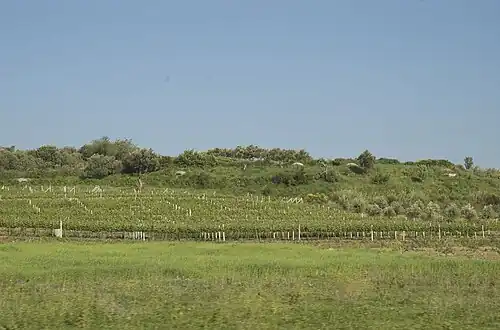 Der Weinbau in Albanien kann auf eine lange Geschichte zurückblicken, erlebt aber noch immer schwierige Zeiten. Die produzierten Mengen Wein sind mit einem Volumen von 17.000 Tonnen (2007) eher bescheiden.[1] Ein Großteil der 105.000 Tonnen (2007) geernteten Weinbeeren werden unverarbeitet als Tafeltrauben verkauft oder zum albanischen Nationalschnapps Raki rrushi und anderen Nebenprodukten verarbeitet.[1][2][3] Von maximal 20.000 Hektar bebauter Fläche zum Ende des Kommunismus Anfang der 1990er Jahre wurde 2006 höchstens 7000 bis 8000 Hektar noch genutzt; die Gesamtanbaufläche ist aber stark im Steigen.[3][4][Anmerkung 1]