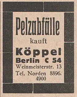 - ↑ Weinmeisterstraße. In: Berliner Adreßbuch, 1910, 3. Theil, S. 904., in der Einleitung, (auch in Kathrin Chod, Herbert Schwenk, Hainer Weisspflug: Weinmeisterstraße. In: Hans-Jürgen Mende, Kurt Wernicke (Hrsg.): Berliner Bezirkslexikon, Mitte. Luisenstädtischer Bildungsverein. Haude und Spener / Edition Luisenstadt, Berlin 2003, ISBN 3-89542-111-1 (luise-berlin.de – Stand 7. Oktober 2009)., aber mit falscher Jahreszahl danach)