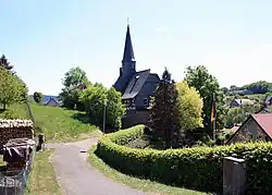 Am Hang der Hardt (341 m ü. NN) steht die spätromanische Kirche mit ihrem gotischen Chor. Sie wurde im 13. Jahrhundert erbaut.