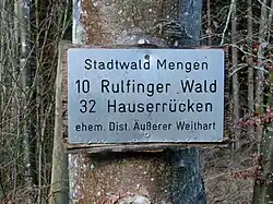 - ↑ Persönliche Information des Landratsamts Sigmaringen, Fachbereich Forst, Forstl. Geschäftsführer Günter Jochum (26. November 2015) und „Waldortkarte, Blatt 23“ mit Stand vom 27. Juli 2015