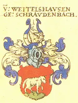 Die Familie Schrautenbach, seit 1515 von Weitolshausen genannt Schrautenbach (auch Weitholtshausen, Weitelshausen oder Weitolzhausen) ist eine zum Ende des 15. Jahrhunderts aus Würzburg über Heidelberg bzw. Aschaffenburg in die Landgrafschaft Hessen eingewanderte, später freiherrliche Adelsfamilie bürgerlichen Ursprungs. Im 16. und 17. Jahrhundert zählte sie zum Kanton Odenwald des Ritterkreises Franken.[1]