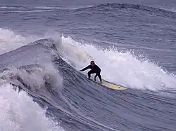 Wellenbrechen bezeichnet bei Wasserwellen den kritischen Grad der Wellentransformation, bei dem die Oberflächenspannung am Wellenkamm überwunden wird, die Orbitalbewegung ihre charakteristische Form verliert und aus der Wellenkontur austretendes Wasser in den Vorderhang fällt. Derart instabile Wellen werden Brecher genannt. Weitere Bezeichnungen sind Sturzwoge, Sturzbrecher oder auch Sturzsee.[1]