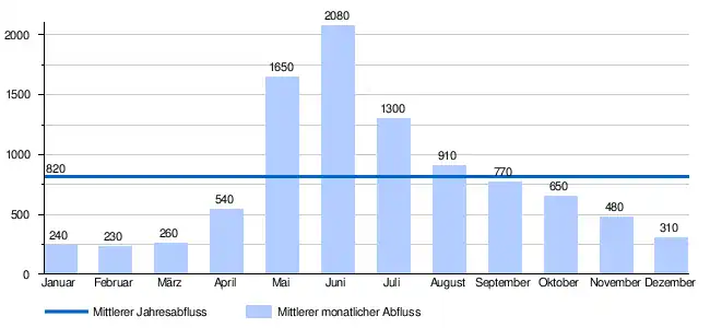 - ↑ Mittlere Abflüsse (m³/s) und Abflussregimetyp für das Gewässernetz der Schweiz beim Bundesamt für Umwelt (BAFU).