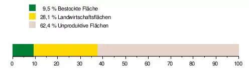 Das Einzugsgebiet besteht zu 9,5 % aus bestockter Fläche, zu 28,1 % aus Landwirtschaftsfläche und zu 62,4 % aus unproduktiven Flächen.