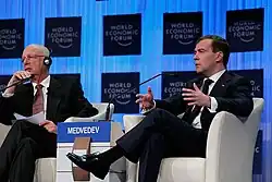 Das European Management Forum änderte seinen Namen 1987 auf World Economic Forum und war in der Folge bestrebt, seine Vision zu erweitern und sich zu einer Plattform für die Lösung internationaler Konflikte zu entwickeln. Führende Politiker nutzen Davos als neutrale Plattform zur Beilegung ihrer Differenzen. So wurde die Davos Declaration, die Griechenland und die Türkei in letzter Minute davon abhielt, einen Krieg zu beginnen, 1988 von diesen beiden Ländern unterzeichnet. Beim Jahrestreffen 1992 traten der südafrikanische Präsident Frederik Willem de Klerk, Nelson Mandela und Mangosuthu Buthelezi erstmals gemeinsam ausserhalb Afrikas auf. Beim Jahrestreffen 1994 unterzeichneten der israelische Aussenminister Schimon Peres und PLO-Vorsitzender Jassir Arafat einen Vertragsentwurf über Gaza und Jericho.[81] 2008 hielt Bill Gates einen Keynote-Vortrag über Creative Capitalism – die Kapitalismusform, die einerseits Gewinne generiert und andererseits die Ungleichheiten der Welt beseitigt, indem sie die Marktkräfte dazu nutzt, den Bedürfnissen der Armen besser Rechnung zu tragen.[82][83] Kurz vor Weihnachten 2013 wurde bekannt, dass der ehemalige deutsche Bundesminister für Wirtschaft und Technologie Philipp Rösler mit Wirkung zum 20. Februar 2014 in das Management des Weltwirtschaftsforums berufen worden war.[84] Der frühere Bundesvorsitzende der FDP übernahm dort Verantwortung für die weltweiten Regierungskontakte des Forums[85] und wurde zuständig für die regionalen Aktivitäten ausserhalb der Schweiz.[86][87]